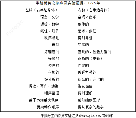 下面是1976年美国的《科学新闻》发表《半脑分工的临床及实验证据》