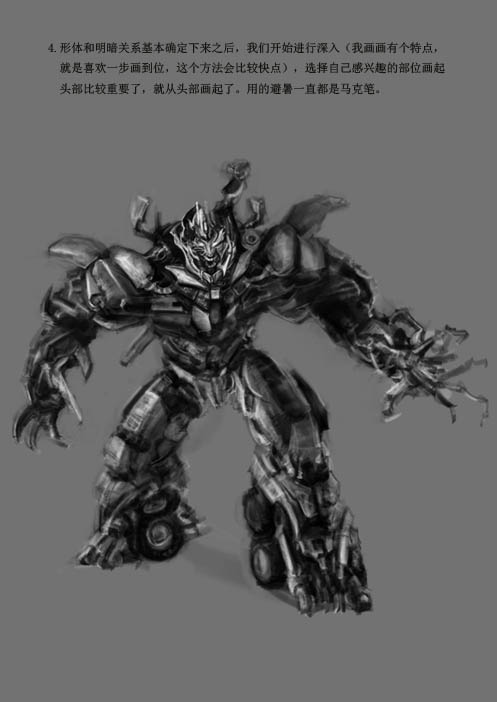 3、进一步完善形体,细节不必去刻画,主要是画出大的明暗关系。