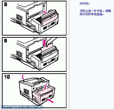 卡纸是打印机最常见的故障之一。出现这种故障时,操作面板上指示灯发亮,并向主机发出一个报警信号,或是数字液晶显示屏出现提示。
